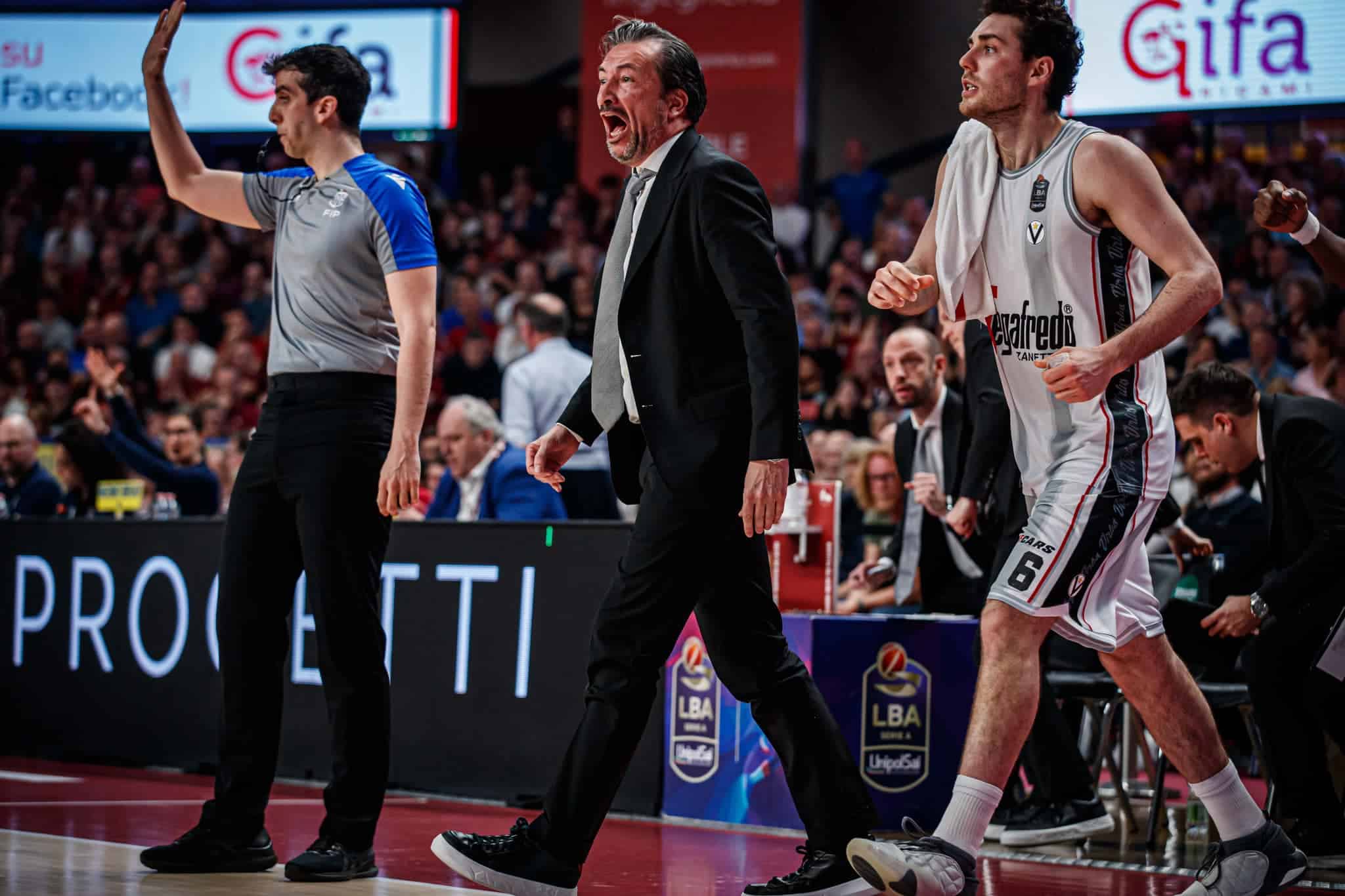«Non so se ci possa essere un singolo dettaglio correggibile per far sì che un finale di partita sia diverso. Alcune sconfitte condizionano il morale della squadra, sapevamo di poter fare meglio giocando con intensità e precisione. Non bisogna arrivare agli ultimi possessi dove ci sono recriminazioni come il libero di Mickey o il fallo di Howard su Abass. Il metro utilizzato su Hackett e Pajola è inaccettabile così come quello su Shengelia, chi ha occhi per vedere se ne faccia una ragione ma è una cosa pesante da accettare. Questo ha creato frustrazione e nervosismo ed ha permesso al Baskonia di trovare i canestri per recuperare in poco tempo. Questo per noi è stato letale».