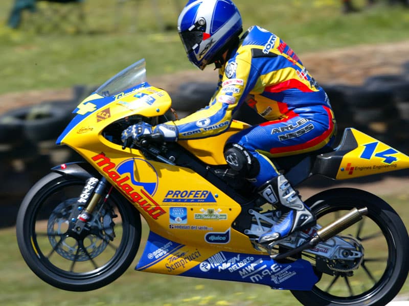 Nel 2003 poi è arrivato anche l’esordio nella classe 125 Motomondiale, sempre grazie alla partnership con Malaguti. Nel 2006 la casa bolognese si ritira dalle corse, ma Engines Engineering continua a partecipare prima con Loncin, poi con Lambretta e infine con Mahindra.